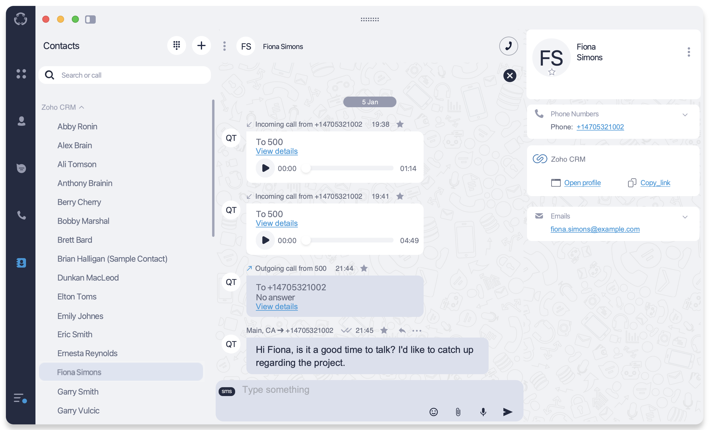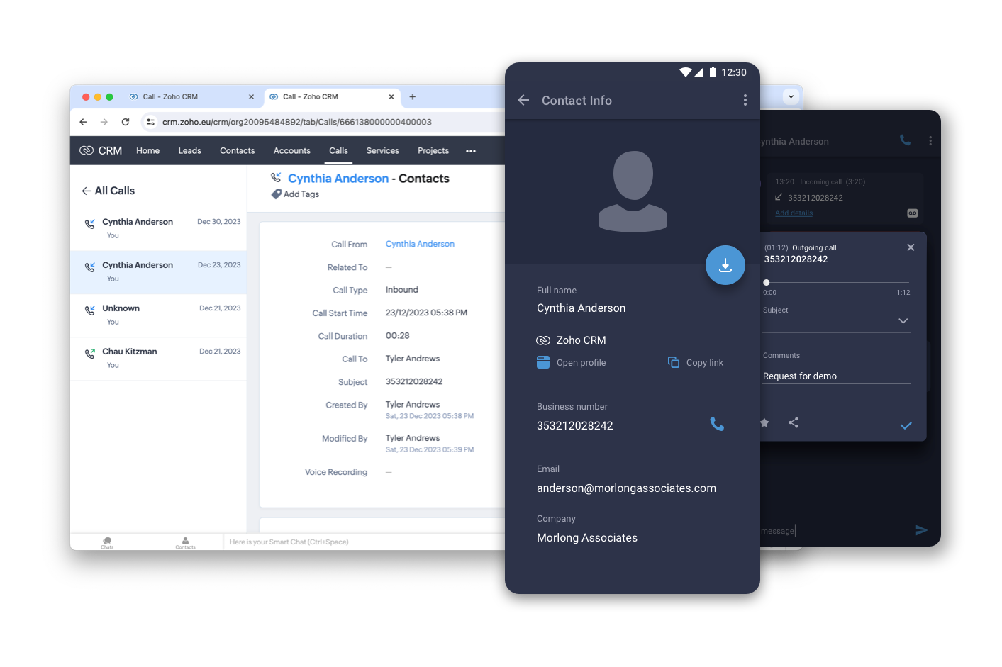 Easily access your Zoho CRM contacts directly from the Ringotel mobile or desktop app, eliminating the need to switch between applications.